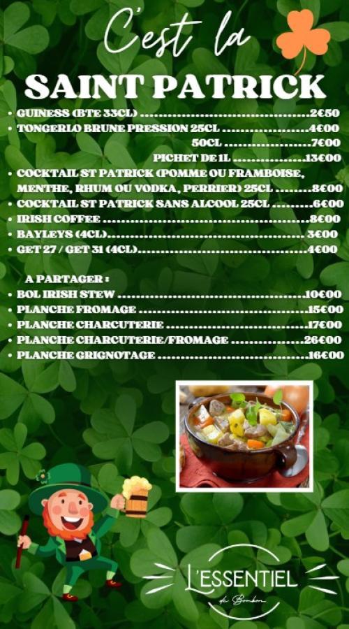 Viens fêter la saint Patrick dans une ambiance sympa et campagnarde…profites d’une ambiance PUB à l’irlandaise. Bières, cocktails et portion d'Irish Stew (spécialité irlandaise), le tout accompagné d'un concert en LIVE avec le groupe BLUE DAFFODILS.