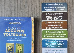 Probablement connaissez vous les 5 accords toltheque , je vous propose le jeu , l'objectif de ce jeu est de permettre à tout un chacun de transformer une situation , une relation difficile voir conflictuelle grâce à la puissance des accords toltheque et aux échanges apportés par les autres joueurs