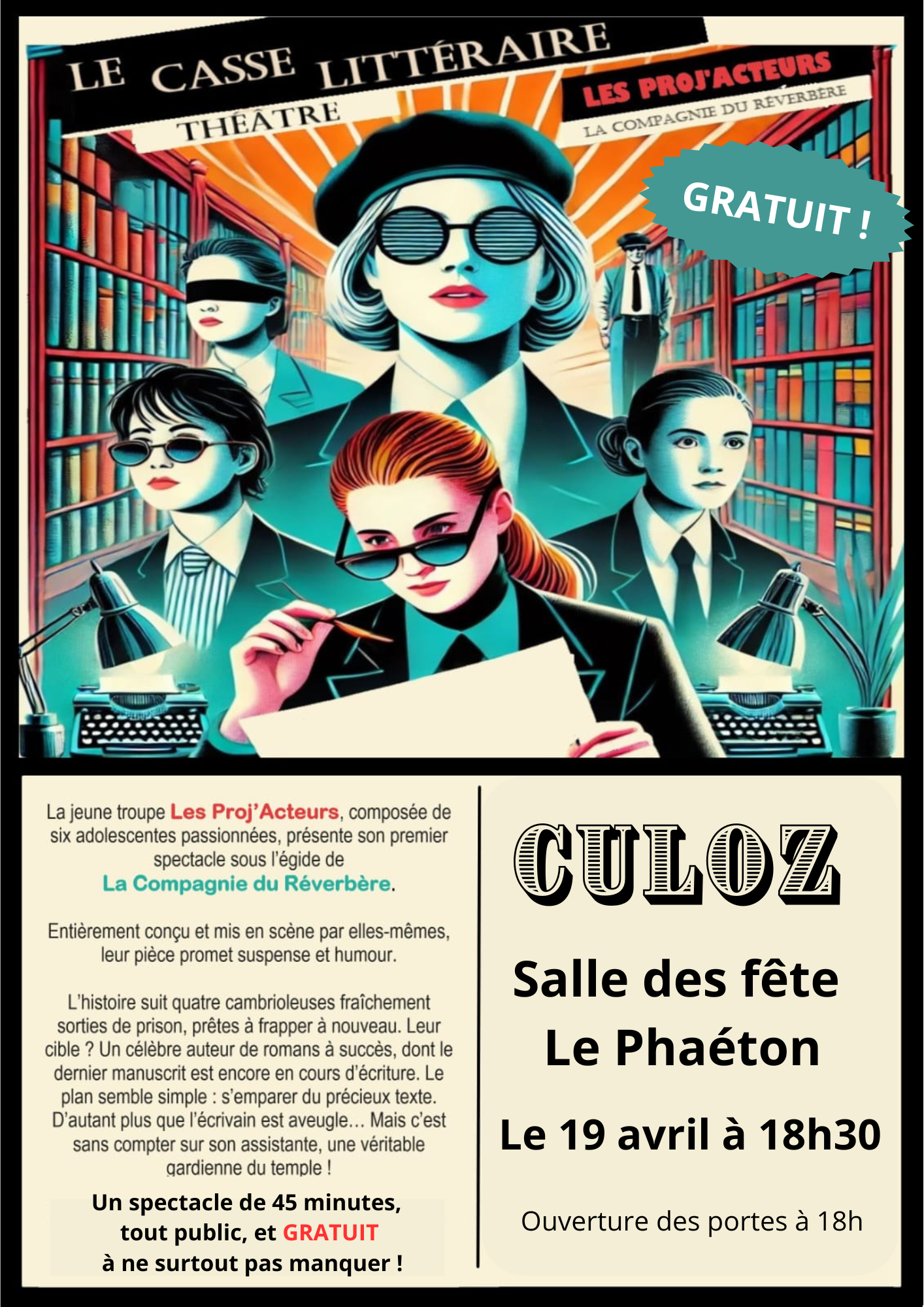 Le spectacle ados vous est proposé GRATUITEMENT et aura lieu à partir de 18h30 (ouverture des portes 18h00)